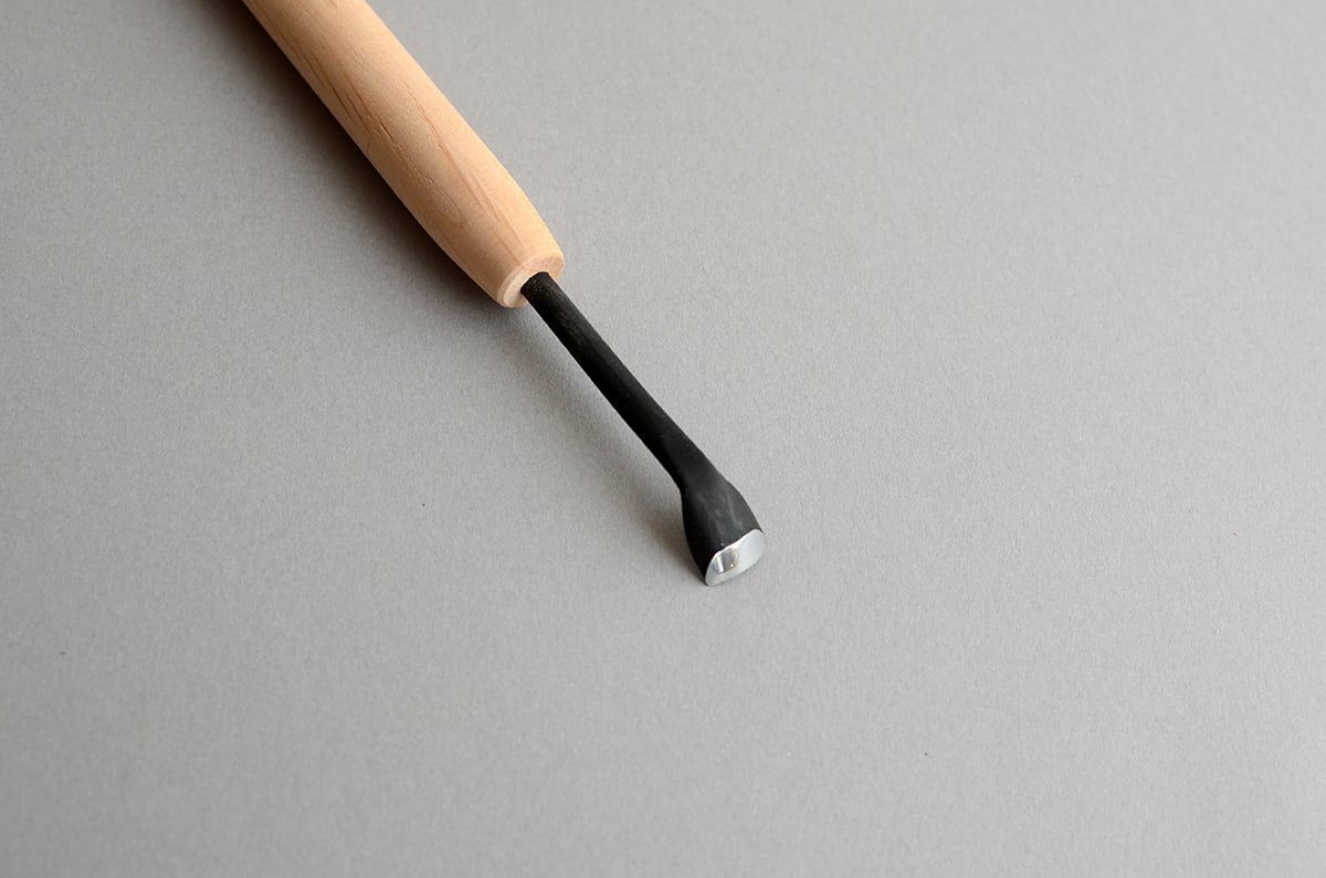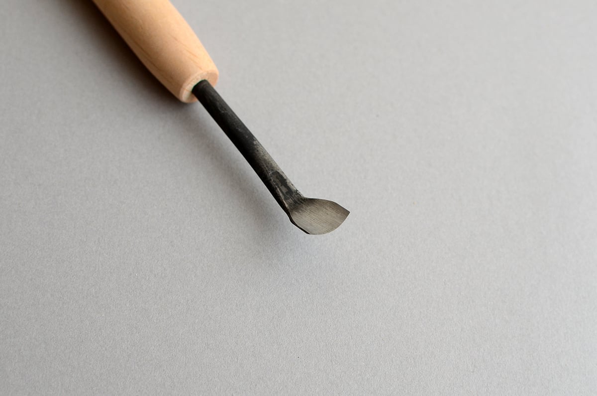 刃の付け根が曲がった独特の形状が、スプーンの掬う部分のような、小さく深いくぼみを彫るのにフィットします。手首への負担も少なく、効率よく作業を進めることができます。