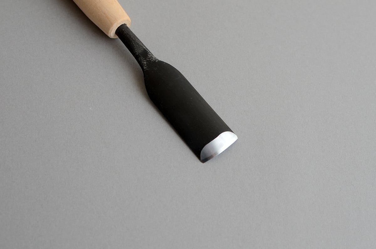 スプーンの救う部分など、小さく深いくぼみを彫る場合は、首が曲がった曲内丸ノミと使い分けることで、より美しい仕上がりが期待できます。